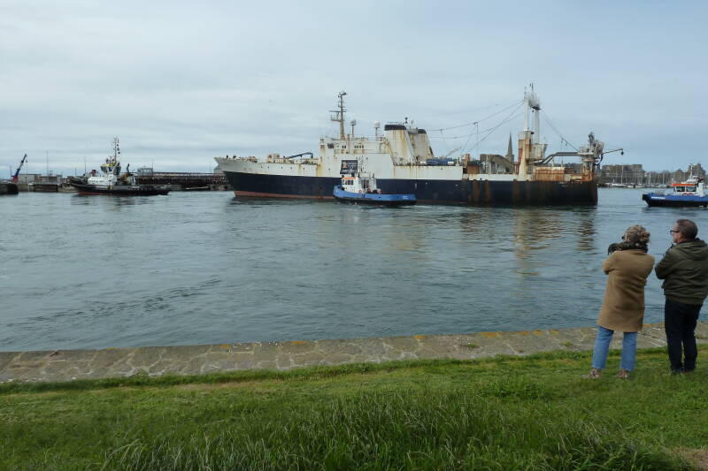 Le Joseph Roty entre doucement dans le sas de Saint Malo pour la dernière fois.